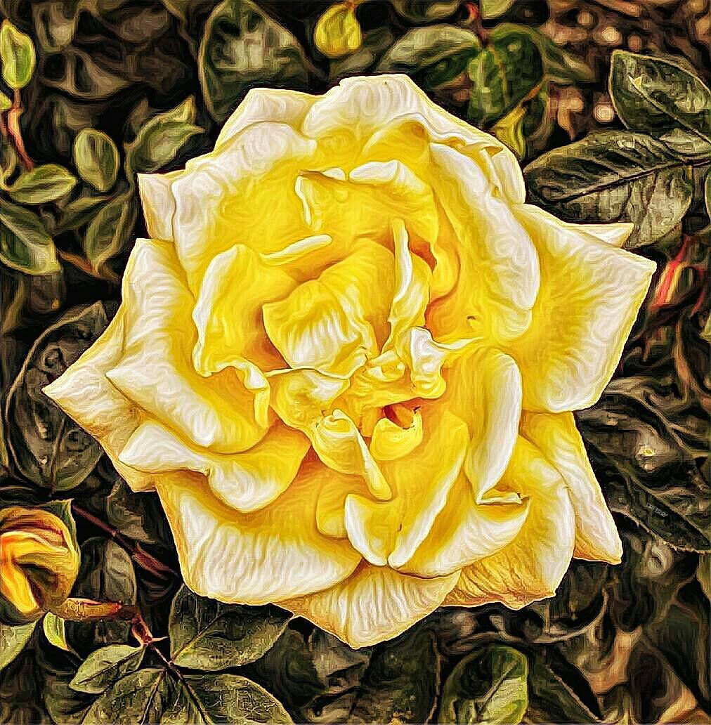 “God Made, I Watered” – Abilene, Texas Needed to post something really pretty to help take my mind off all the earth rumblings here in Roma today. ๐ This stylized Texas Yellow Rose is from one of 25 rose bushes I have planted. Enjoy! #photobydperry *